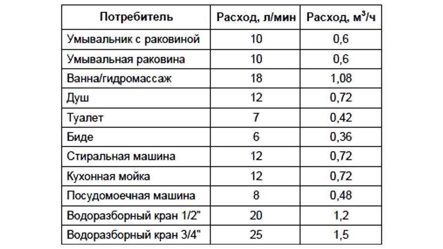 Здесь важно знать и количество жителей в доме, и сколько бытовой техники установлено. Учтите все потребители жидкости – от сливного бачка унитаза и душевой кабинки до стиральной и посудомоечной машины