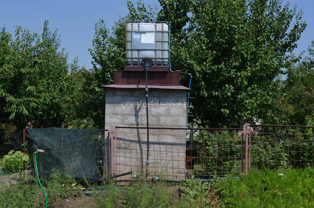 Если нет возможности качать воду из источника в бак, ее придется носить ведрами вручную и поднимать на крышу постройки, а это довольно тяжело. Чтобы облегчить работу, нужно спланировать широкие удобные дорожки.