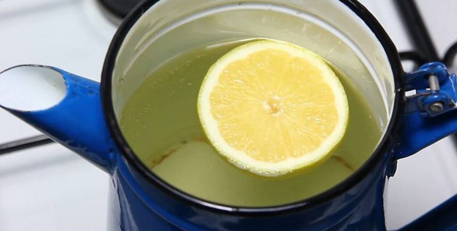 В другом случае пригодиться свежий лимон. Фрукт поделить на 4-5 частей, поместить на дно посуды. Залить водой, чтобы она покрыла фрукт и кипятить около 30 мин. После этого дать содержимому остыть.