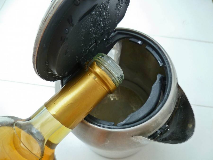 Чайник заполняется водой на 2/3 части, затем дополна добавляется 9%-ный уксус. Раствор доводится до кипения, после выключения выжидается время, пока чайник остывает.