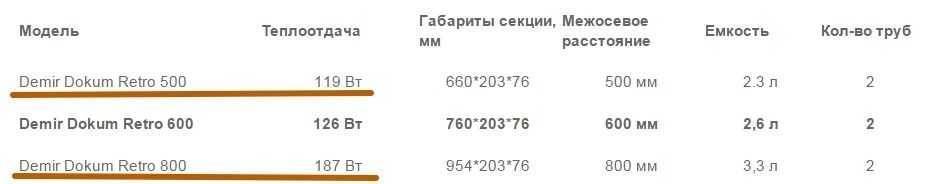 Это технические характеристики чугунных радиаторов турецкой фирмы Demir Dokum. Разница более чем солидная. Она может быть еще больше