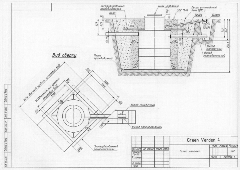 В техническом паспорте ЛОС есть подробная схема подключения, но рабочие ей не пользовались. При желании с помощью этой схемы станцию можно установить самостоятельно