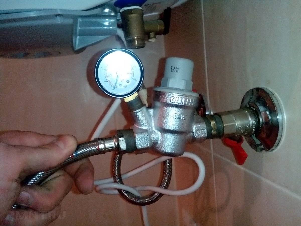 Более точной настройки давления в системе можно добиться установкой дополнительного манометра, который надо расположить на входе в систему домашнего водопровода. Разница в показаниях двух приборов даст возможность правильно настроить работу регулятора давления воды.