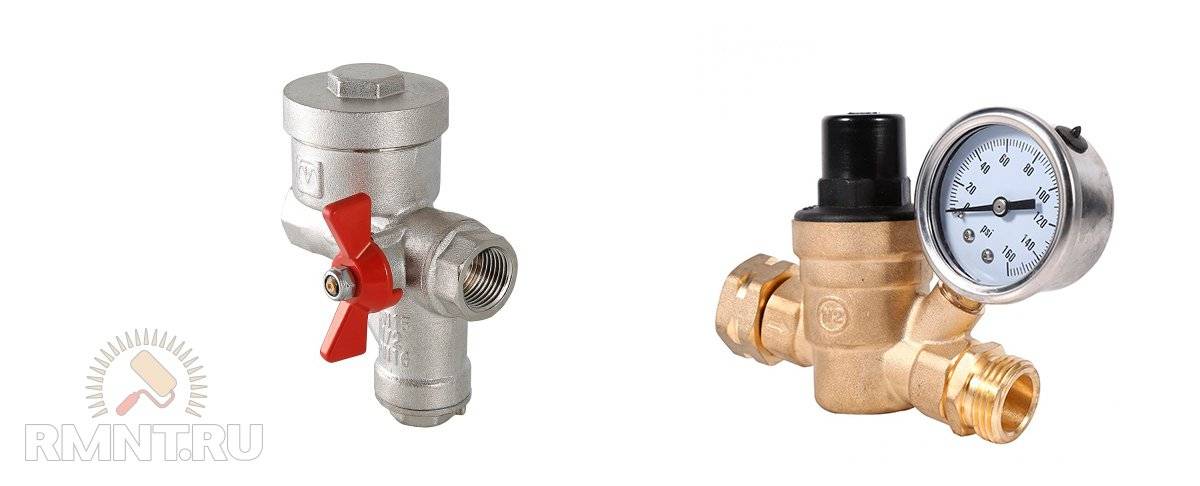 Обычно себя оправдывает лишь однокорпусное исполнение редуктора с манометром, облегчающим процесс настройки. Два таких редуктора желательно устанавливать в качестве основных в местах врезки в стояки ГВС и ХВС. Дополнительные редукторы, устанавливаемые в точках питания коллекторов, могут манометров не иметь. При необходимости измерительный прибор лучше разместить на предназначенном для этого отводе распределителя.