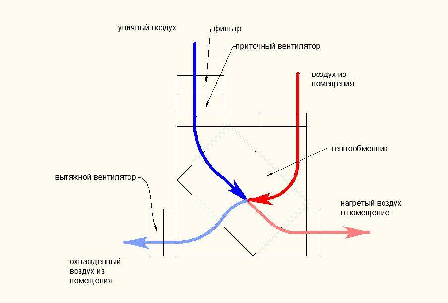 Рассмотрим детальнее, как работает рекуперативный теплообменник и за счёт чего достигается экономный расход тепла. Для понимания всех процессов, проходящих в небольшом корпусе, следует остановиться на принципе функционирования установки.