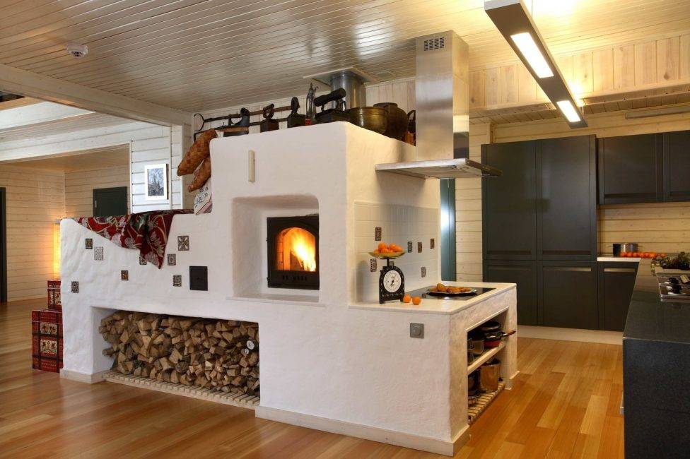 Современные варианты уже не используют для непосредственного приготовления пищи, поскольку тут актуально использовать электрические, газовые горелки. Однако все равно это эффективный способ организации автономного отопления дома, а также элементом декоративного оформления современного интерьера, причем достаточно оригинальным.