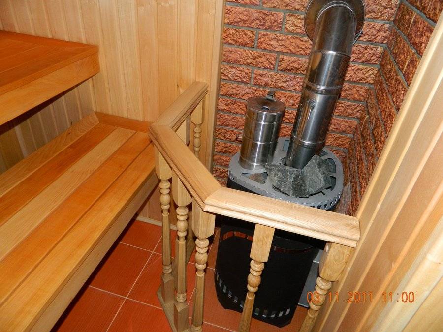 Минус вертикального типа ‒ хороший прогрев стен помещения, а вот пол и воздух вверху парной прогреваются плохо.