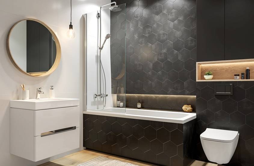 У современного стиля нет таких строгих требований к площади и планировке, как у классики или даже лофта. Он легко подстраивается под любые помещения. Поэтому контемпорари – один из лучших вариантов для маленькой ванной комнаты.