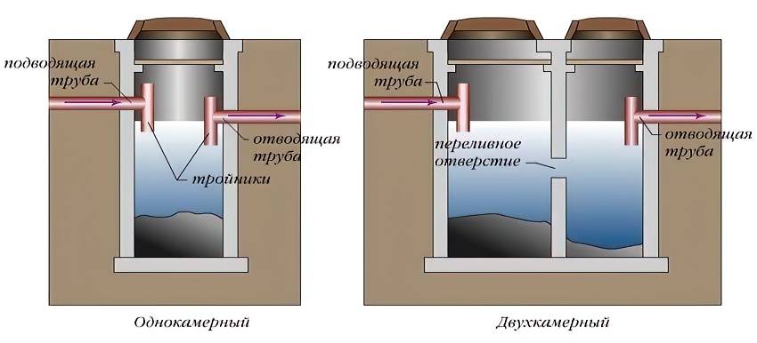 Для однокамерного септика весь объём приходится на первую камеру, у двухкамерного обычно емкости делят в соотношении 2/3 и 1/3. Хотя многие «упрощают» схему и делают обе емкости одинаковыми, но в этом случае первая из них должна быть не меньше 2/3 расчетного объема.