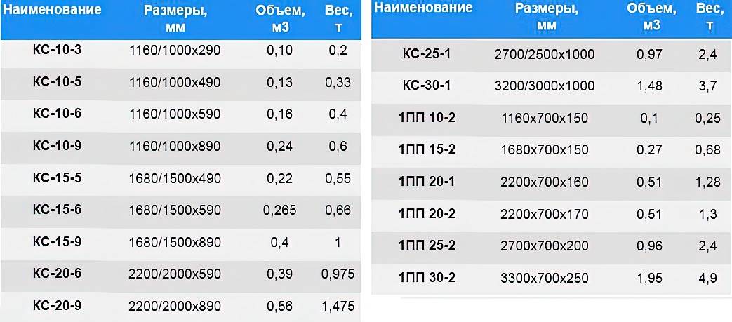 В соответствии с рассчитанным объемом подбираются размеры колец и их количество. Диаметр бетонного кольца может быть от 80 до 200 см, иногда встречаются кольца диаметром 250 см. Высота — от 50 см до 1 м. В таблице ниже приведены размеры стандартных железобетонных колец, их маркировка, вес и объем. В колонке «размеры» указаны через дробь наружный диаметр, внутренний диаметр, высота. Все величины в миллиметрах.