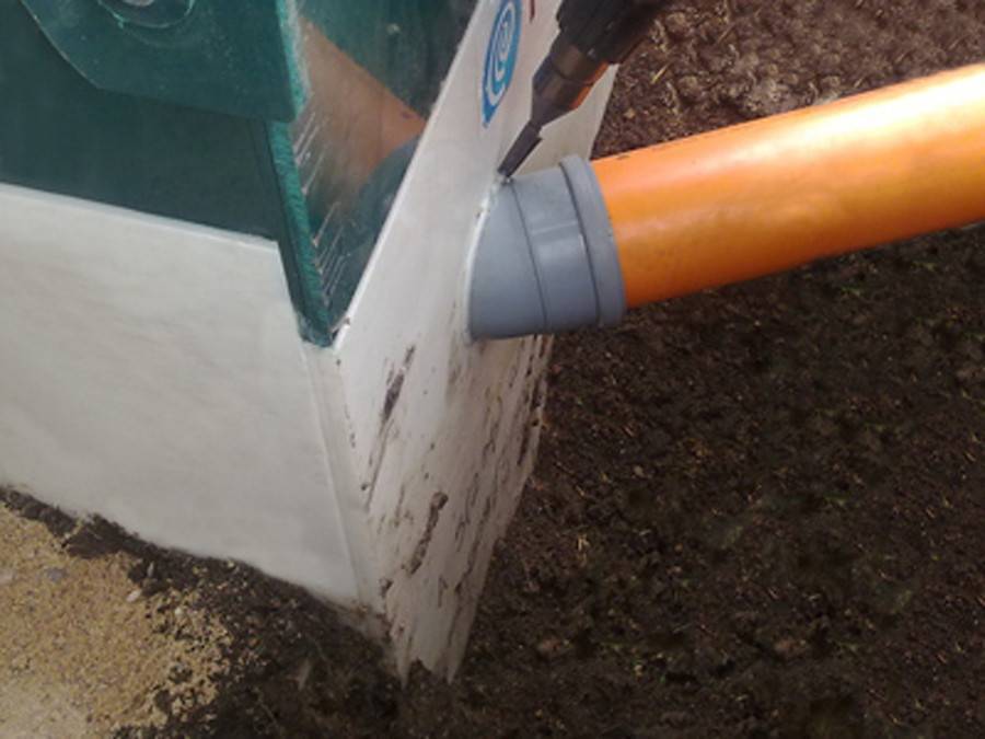 Под подводящую трубу необходимо просверлить в приемном отсеке канализационного комплекса отверстие