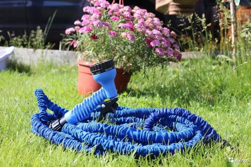 Этот вариант полюбился дачникам больше всего за простоту хранения и эксплуатации. Мягкий шланг, выполненный из прочного силиконового волокна, способен увеличиваться до 20 м, при этом его масса в нерабочем состоянии менее килограмма.