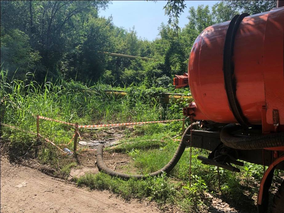 Выкачка содержимого выгребной ямы ассенизационной машиной