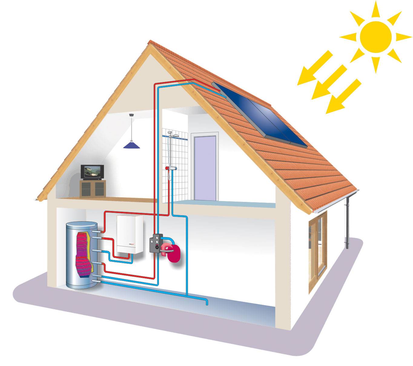 Для средней полосы России солнечные устройства не могут гарантировать стабильный приток энергии, поэтому используются как дополнительная система. Интегрирование в существующую систему отопления и горячего водоснабжения отличается для солнечного коллектора и солнечной батареи.