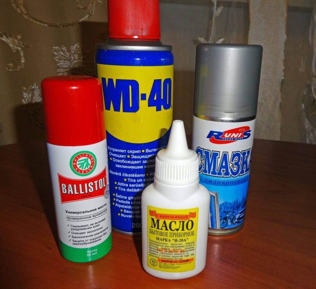 Часто для этих целей пользуются смазкой вд-40. Однако стоит понимать, что это неполноценный смазочный материал, так как в его составе содержится только 20% масла. Средство создано на основе спирта, чтобы очищать все детали от пыли и загрязнений.