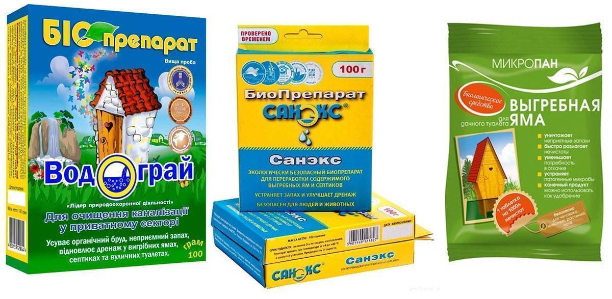 Ассортимент биопрепаратов, ориентированных на использование их в уличных туалетах, оборудованных выгребной ямой, достаточно обширный. Их структурная формула включает следующие компоненты: