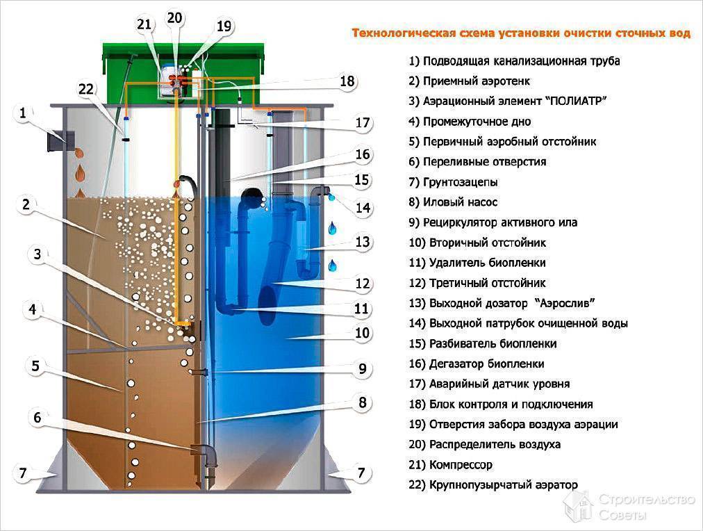Схема работы аэротенка для переработки вод, относящихся к сточным