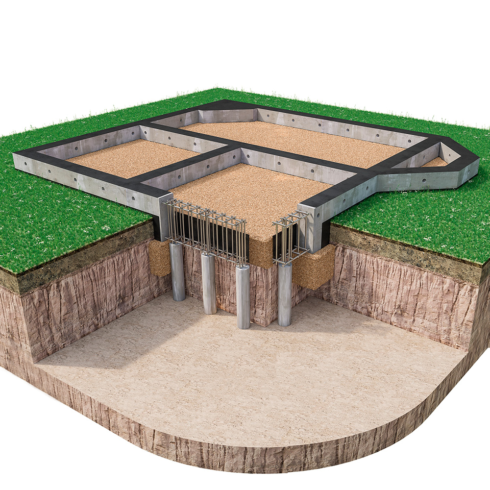 (1) Во-первых, для утепленного финского фундамента практически не имеет значения рельеф участка. Нередко пятно застройки обладает перепадом, а в случае с УФФ эта задача решается легко — увеличением высоты цокольной части фундамента.