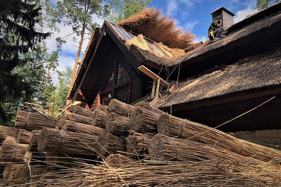 После этого на предприятии материал обрабатывается антипиренами с внешней и внутренней стороны, чтобы избежать воспламенения в процессе эксплуатации. Пожаробезопасность зависит не только от качества антипиренов, но и от того, как проведена укладка крыши камышом. Узнать больше вы можете из видео, подготовленного нашей командой.