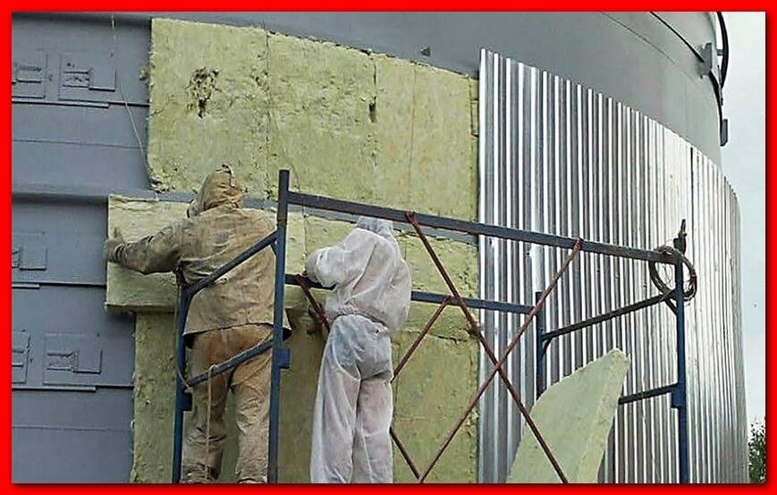 В этом случае утепление выполняется матами из минеральной ваты, которые фиксируются на резервуаре и закрываются листами устойчивого к коррозии оцинкованного металла.