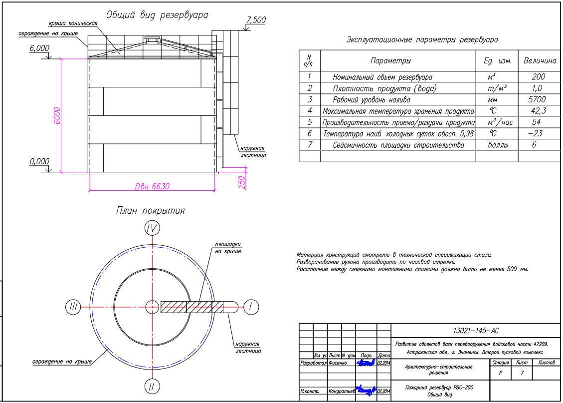 Расчет толщины изоляции стенки и крыши резервуара для воды произведен исходя из условия снижения тепловых потерь и минимального охлаждения воды. На основании расчетов и наиболее распространенной номенклатуры для тепловой изоляции цилиндрической стенки резервуара применяются минераловатные плиты толщиной 50 мм. Маты фиксируются самоклеющими штифтами для теплоизоляции и обвязываются проволокой. Готовая теплоизоляция покрывается гладкими оцинкованными окрашенными листами, которые крепятся винтами к бандажом из уголков, приваренным к поверхностям стенки и настила крыши.