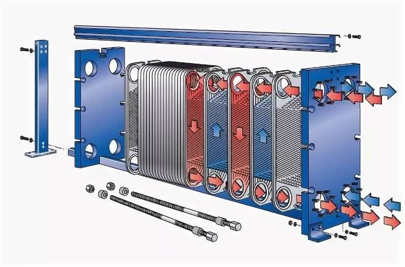Таким образом функционируют все подобные устройства. Принцип работы пластинчатого теплообменника для ГВС точно такой же, как у моделей, предназначенных для кондиционирования, охлаждения смазочных материалов и проч. Единственное отличие состоит в проходящих через корпус видах сред. В модели для ГВС — это, соответственно, вода, в других устройствах такого типа обмен может происходить между растворами, маслами, газами и т. д.