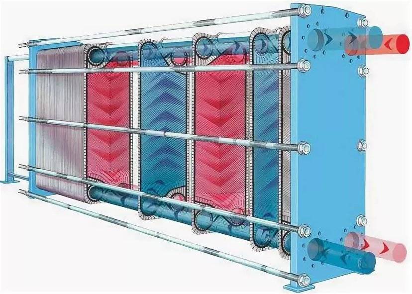 Во время работы в каждой секции, кроме первой и последней, происходит интенсивный обмен теплом через пластины сразу с двух сторон.