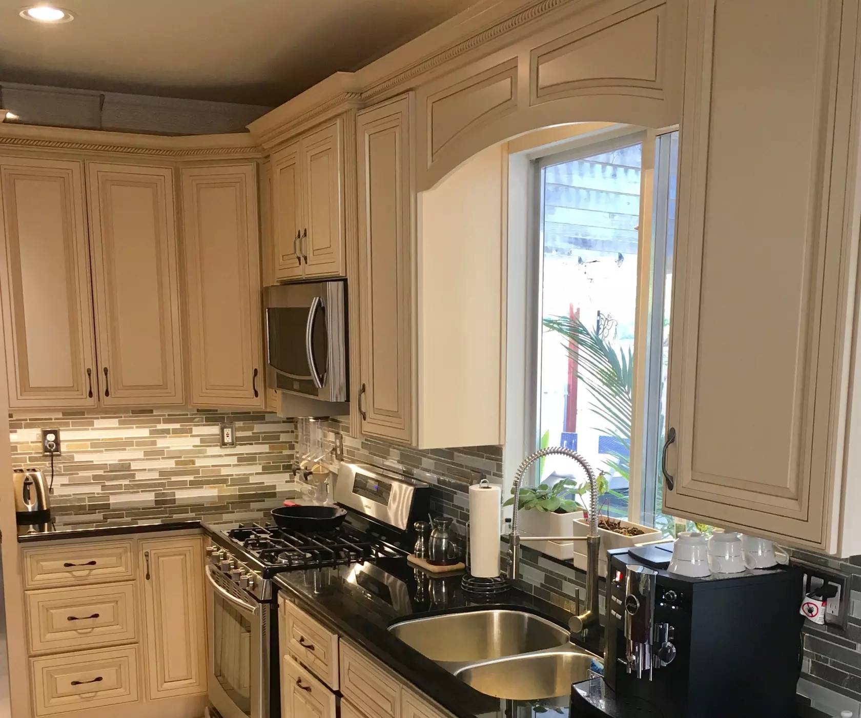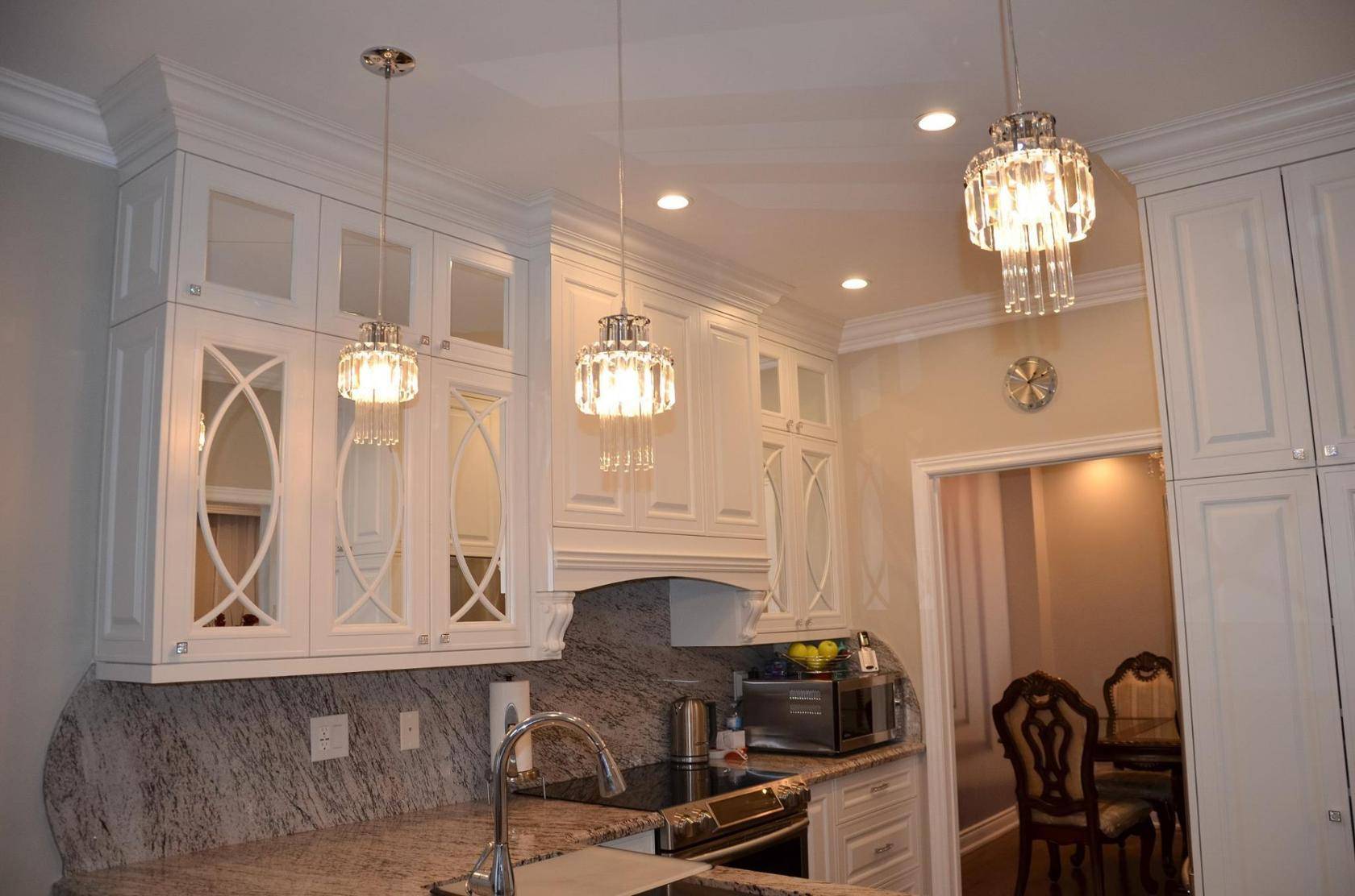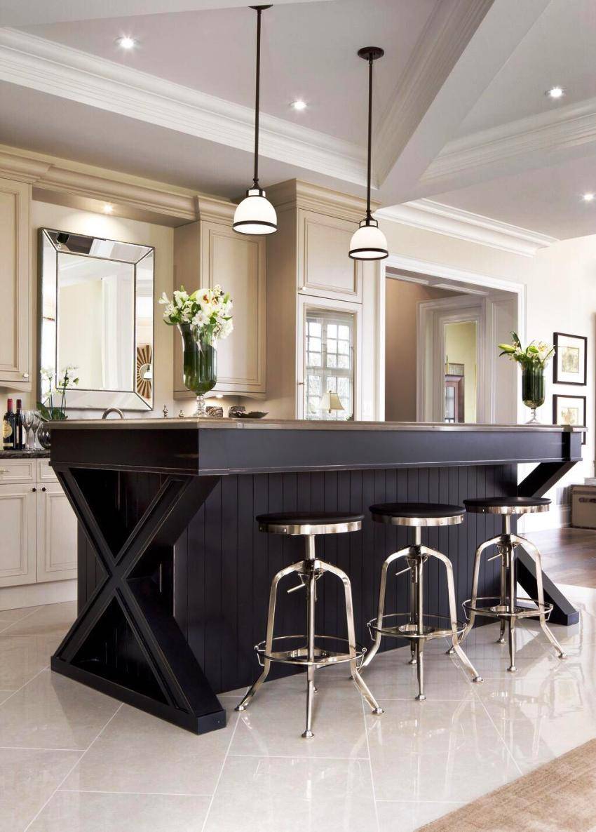 Традиционным считается стиль, который оформлен с нотками стиля старого света или классического американского: винтажная отделка, лепнина, фигурные ножки, филенчатые дверцы. Зачастую на потолке такой кухни можно увидеть люстры-канделябры.