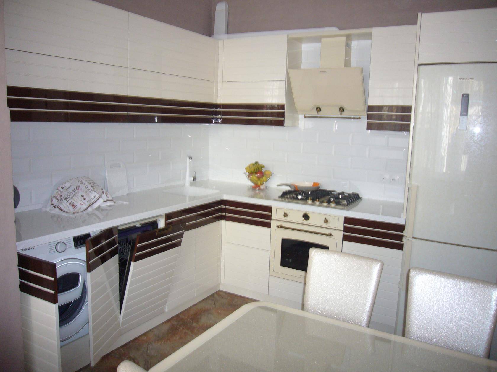 Посудомоечную машину лучше разместить возле мойки. Над плитой устанавливается мощная вытяжка. Такие бытовые приборы, как: мультиварка, тостер, блендер, кухонный комбайн и тому подобное, значительно упрощают процесс приготовления вкусных блюд