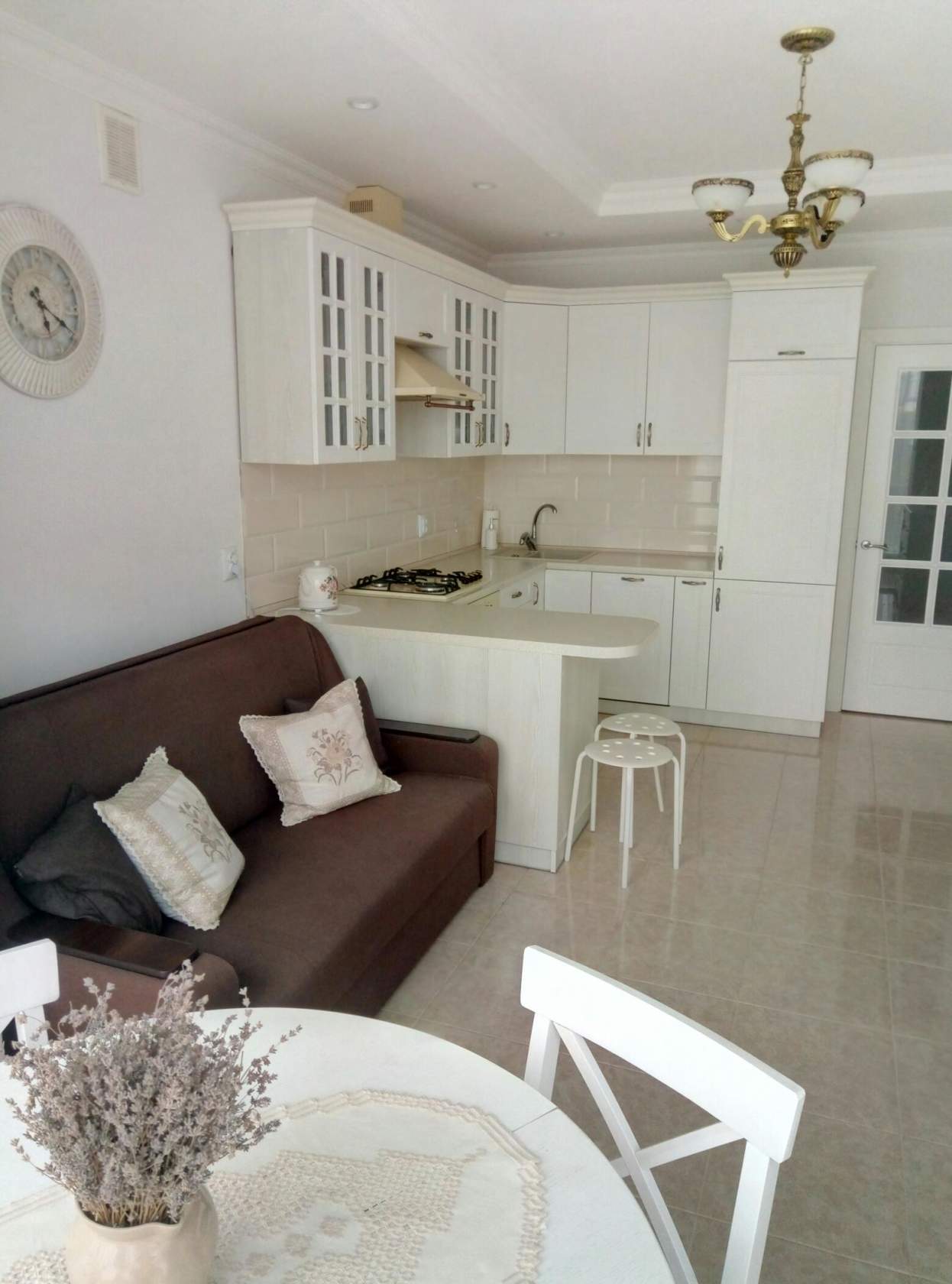 Кухня в белом смотрится элегантно и уютно