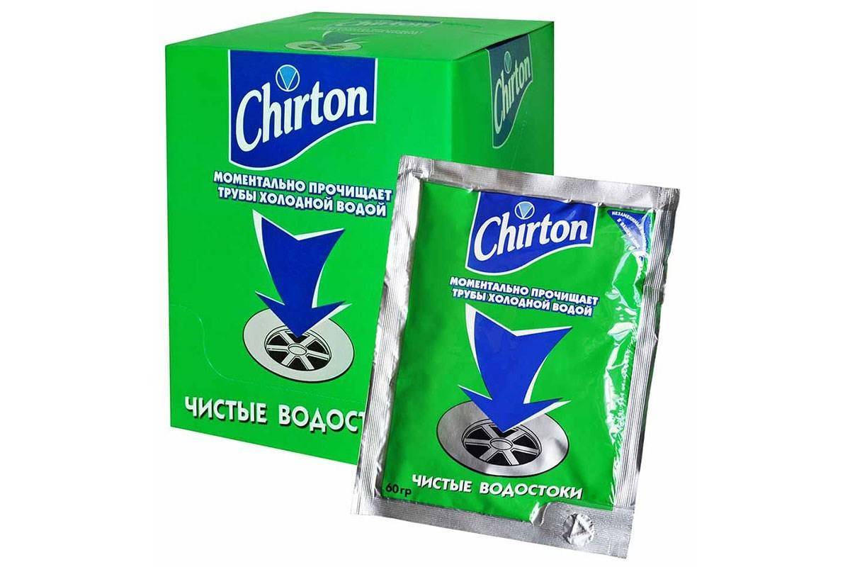 Chirton – имеет вид голубоватых гранул, которые сразу начинают работать при контакте с водой. Несмотря на свою «химичность», данный продукт считается одним из самых безопасных. Запах едкий, но быстро выветривается. Время действия – 15 минут. К плюсам относится эффективность, одноразовость, стоимость, быстрое действие, без хлора. Недостатки: наличие не во всех торговых точках.