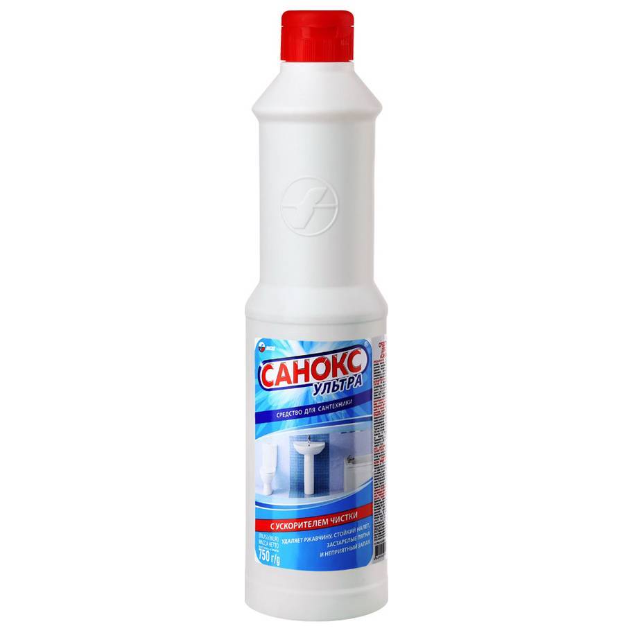Санокс – приемлемый запах, не портит трубы, подходит для профилактики, имеет жидкую консистенцию. Плюсы: низкая цена, специальная защита от детей, оптимален для любых труб. Минусы: медленное действие, неэкономный расход.