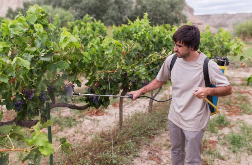 Обработка кустов винограда должна проводиться по направлению ветра, важно соблюдать инструкцию. Опрыскивания должны проводиться через 20 дней, последнюю следует запланировать за 20 дней до срезания кистей