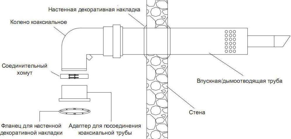 - При длине коаксиальной трубы не более 1 метра требуется установить сужающуюся диафрагму на воздуховод. Мощность вентилятора в дымоходе рассчитана на определенную длину трубы и, если она меньше – будет потеря тяги со всеми вытекающими последствиями.