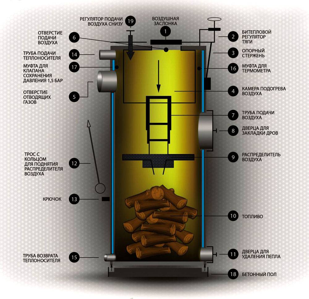 Прежде чем рассматривать виды котлов длительного горения, попытаемся понять каков их принцип работы: