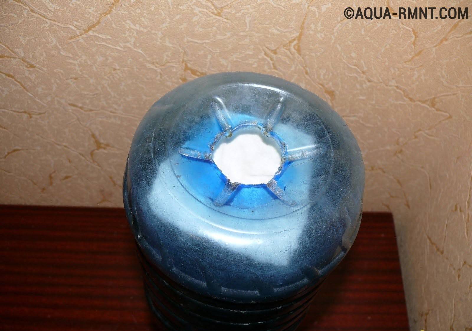 Такой самодельный фильтр должен плотно войти в горлышко стандартной десятилитровой бутыли. Остается соединить принимающий бак с фильтром и бутылью. В установку можно залить сразу полное ведро колодезной воды, которая через несколько часов отфильтруется. Таким образом в доме всегда будет запас чистой питьевой воды.