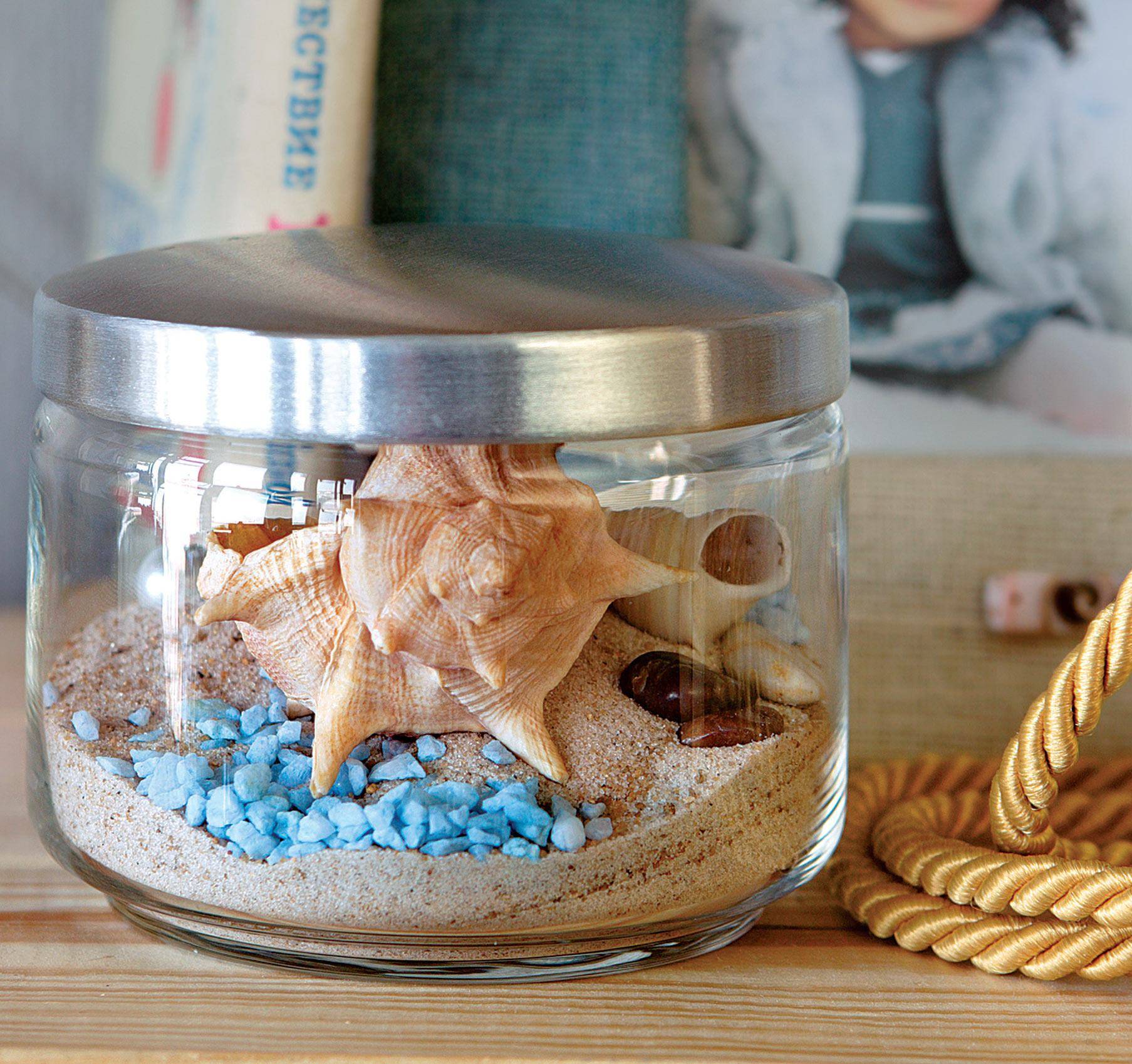 Прозрачная ваза из гладкого стекла, доверху наполненная разнообразными ракушками, станет идеальным морским украшением для дома. Она будет прекрасно смотреться на журнальном столике, на прикроватной тумбочке или на книжной полке.