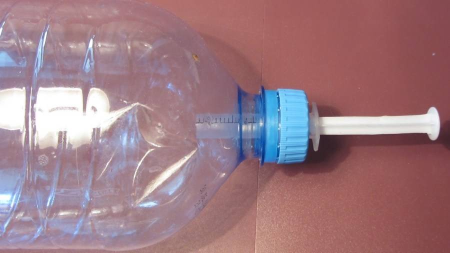 - Поднимаем донышко, наливаем воду в бутылку и слегка (не до конца) откручиваем пластиковую пробочку.