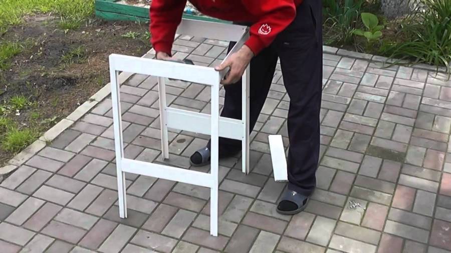 Наверху тумбы между ее боковинами монтируется емкость для воды. Дно умывальника выполняют из небольших реек толщиной 20 мм и шириной 45 мм. Заключительный этап включает в себя монтаж дверцы с прикрученной ручкой. Готовая конструкция должна быть тщательно отшлифована и покрашена. Раковину устанавливают в самую последнюю очередь.