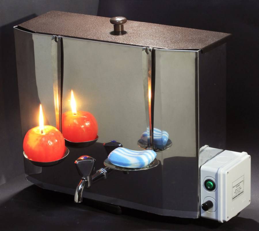 Быстрый подогрев воды в умывальнике «Мойдодыр» осуществляется при помощи водонагревателя мощностью в 125 Вт. При достижении температуры нагрева воды 60ºС установка автоматически отключает функцию прогревания.