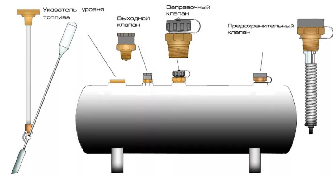 По возможности емкость размещают таким образом, чтобы у машины-заправщика был свободный доступ к горловине. Если особенности участка не позволяют расположить хранилище топлива неподалеку от въезда, для закачки сжиженного газа в емкость используют специальный рукав длиной более 40 метров.