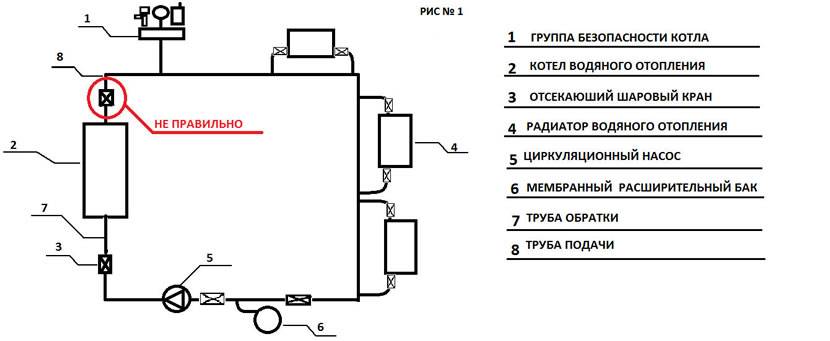 аргументируя это тем, что в случае выхода котла из строя можно будет его заменить или произвести ремонтные работы. В обоих случаях установка была произведена не правильно и, в случае выхода котла из строя, сервисные центры откажут Вам в гарантийном ремонте, аргументируя это тем, что котел установлен не правильно: такое расположение крана делает возможным перегрев системы и выход котла из строя в случае перекрытия отсекающего крана рабочими, третьими лицами или детьми.