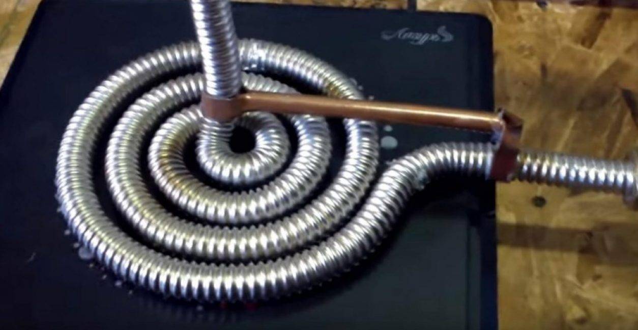 Помещаем спираль-котёл на индукционную плитку. И проверяем работоспособность системы. Если всё сделано правильно, то радиатор нагреется до 60 градусов в течение 5 минут.