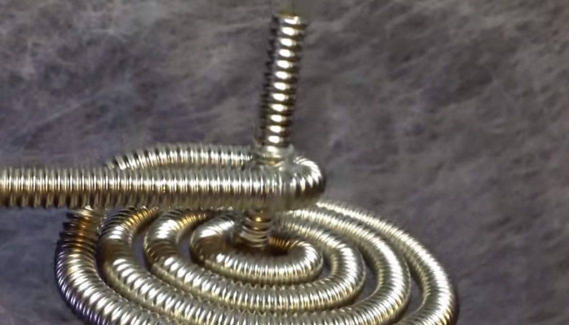 Самая простая схема устройства, которую собирают, состоит из отрезка пластиковой трубы, в полость которую закладываются различные металлические элементы с целью создать сердечник. Это может быть тонкая нержавеющая проволока, скатанная шариками, нарубленная мелкими кусочками проволока – катанка диаметром 6—8 мм или даже сверло диаметром, соответствующим внутреннему размеру трубы. Снаружи к ней приклеиваются палочки из стеклотекстолита, а на них наматывается провод толщиной 1.5—1.7 мм в стеклоизоляции. Длина провода – порядка 11 м. Технологию изготовления можно изучить, просмотрев видео: