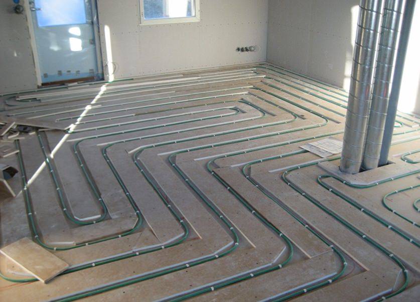 - водяной теплый пол, где прокладываются трубы с циркулирующим по ним жидким теплоносителем;