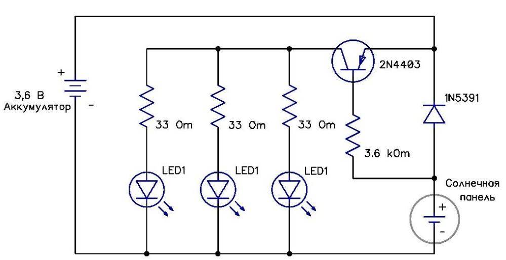 Схема светильника на солнечных батареях