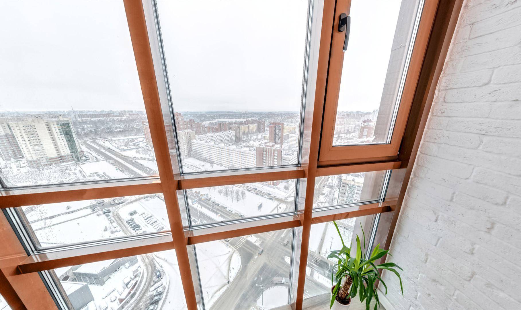 При выборе панорамного окна для теплого остекления нужно учесть два совета. Во-первых, окно не может быть слишком тяжелым — балконная плита не рассчитана на избыточную нагрузку. Во-вторых, теплостойкость стеклопакета не может быть меньше 0,8 м²*С/Вт, иначе никакого утепления не будет — окно промерзнет при первом же морозе.