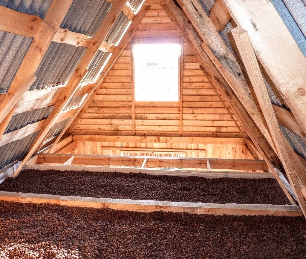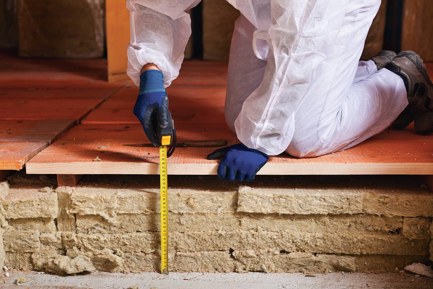 Опилки или керамзит. Насыпной вариант для деревянных конструкций или бетонных оснований с уложенными лагами. Обойдется дешевле всего, но и показатели теплоизоляции будут ниже, чем у остальных разновидностей. К тому же опилки нужно обязательно обработать специальным составом для защиты от возгорания. Минеральная вата. Это могут быть мягкие маты, которыми заполняется пространство между лагами, или жесткие плиты, их вырезают по размеру и заполняют все пространство для качественного утепления. Лучше использовать второй вариант: у плит высокие показатели теплоизоляции, со временем они не слеживаются и не теряют своих характеристик. Выбирают по толщине: если нужно заполнить пространство высотой 10 см, лучше положить 2 слоя по 5 см со смещением стыков, так эффект будет лучше. Эковата. Современное решение, которое представляет собой распушенную целлюлозу. Наносится специальной установкой и заполняет все пустоты, не давая холоду проникнуть через щели. Эковата не боится сырости, при намокании теплоизоляционные характеристики не снижаются, она не поражается грибком и не повреждается грызунами, со временем не усаживается. Для нанесения понадобится оборудование, и это главный недостаток данного решения. Пенопласт. Недорогой вид, который часто используют и при утеплении пола. Так как листы будут укладываться между лагами и закроются досками, можно приобретать самую дешевую разновидность небольшой плотности, это не имеет особого значения, так как нагрузки на него не будет