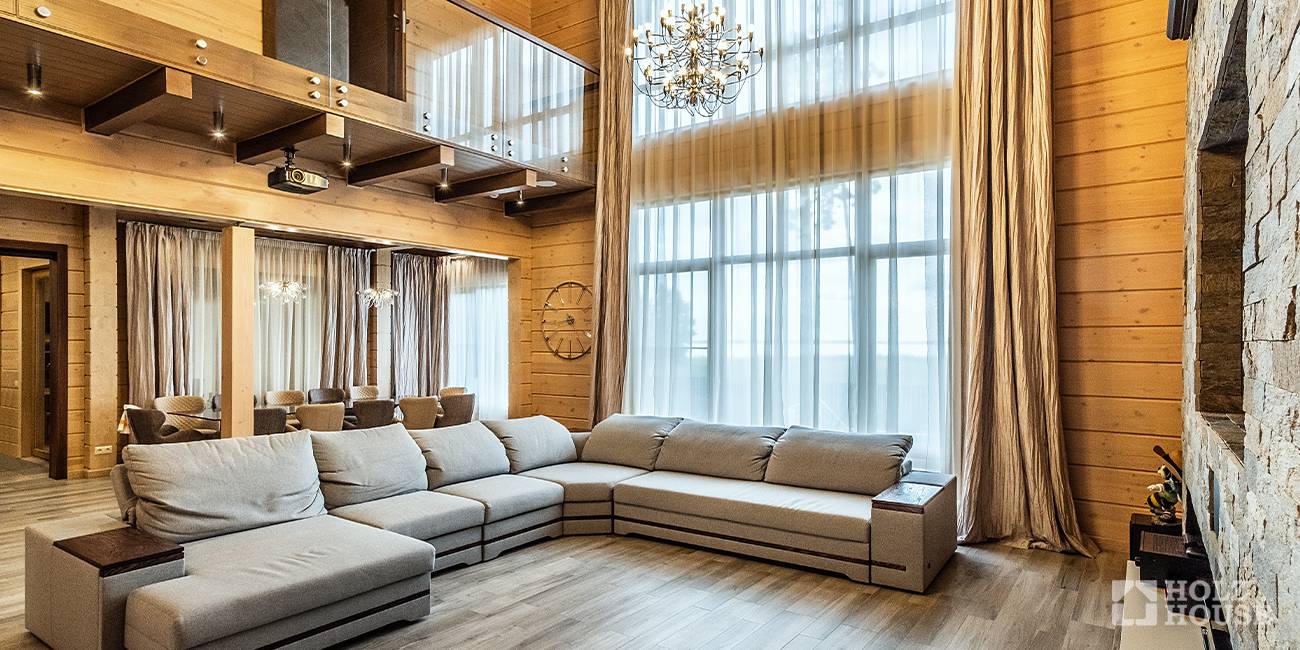 Стены из клееного бруса почти не нуждаются в отделке. Гладкие боковые стороны брусьев сразу создают базовую поверхность, которую не нужно выравнивать. Остается только придать стенам нужный тон и покрыть лаком. Экономия на отделочных материалах – существенное преимущество бруса.