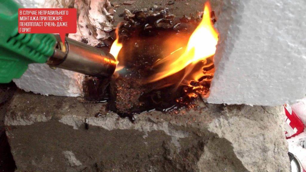 Например, три приведенных варианта относят к группам горючести: Г4 (Сильногорючий), Г3 (Нормальногорючий) и НГ (Негорючий). Угадайте, что относится к последнему? Не пенопласт. Такой материал, действительно затухает, но при условии, что устранён источник огня. А если нет? Он плавится и выделяет очень вредные вещества.